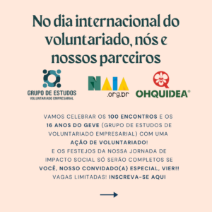 O 100º encontro do Grupo de Estudos de Voluntariado Empresarial, um marco que celebra 16 anos de trocas, aprendizado e impacto social compartilhado foi comemorado com Ação de Voluntariado em parceria com a Ohquidea e a Naia.